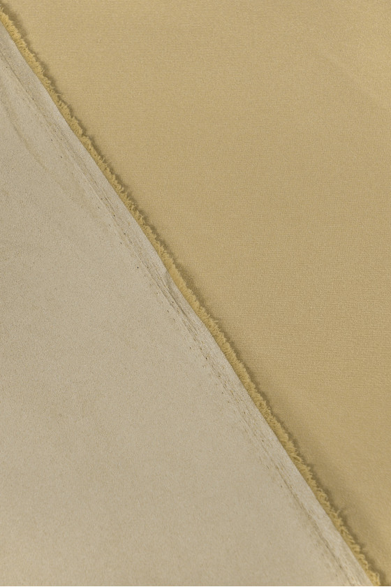 Italienskt, elastiskt alcantaratyg i ljusbeige färg. Alcantara är ett syntetiskt tyg tillverkat av mikrofiber (mikrofibrer, upp till 20 gånger finare än ett människohår), det ser ut och känns som mocka. Mjukt, tunt, elastiskt tyg - perfekt för att sy en klänning, kjol eller smala byxor.