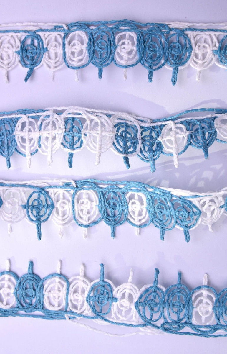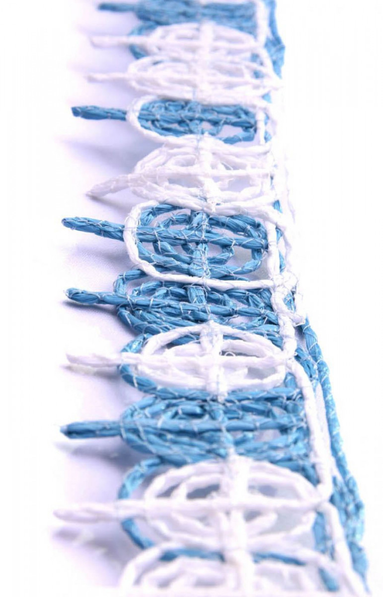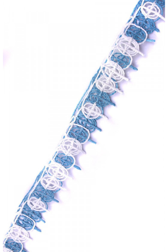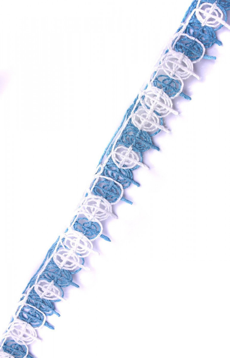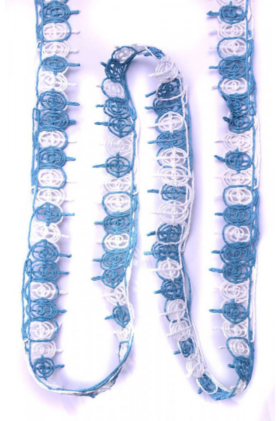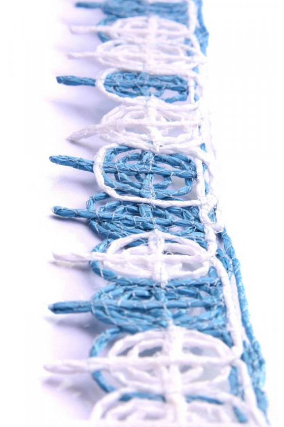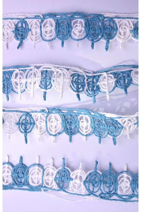 Vit och blå sybehörstejp idealisk för finish och tillbehör. Bredd ca 4 cm.