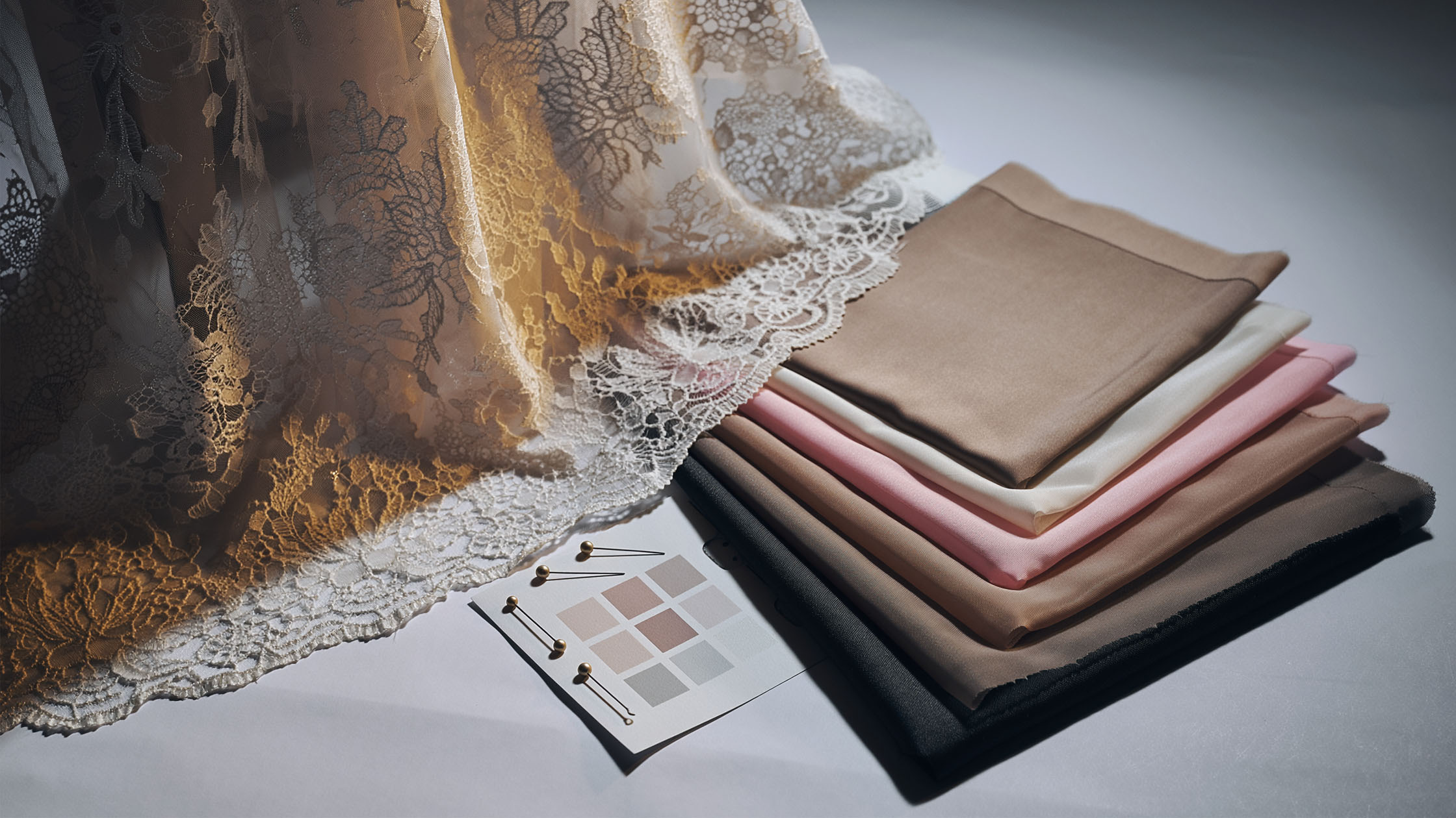 Materialets öppna struktur gör det som finns under lika viktigt som det översta lagret självt. Fodret här fungerar som en duk där du blottlägger ett intrikat mönster av broderi eller vävning. Om du väljer fel bas kan du helt tappa spetsens dragning, vilket får det att se ut som ett slätt och ointressant tyg på avstånd. Du behöver behandla fodret som en bakgrund som antingen förstärker mönstrets tredimensionalitet eller plattar till och döljer det. Ett foder som är för blankt kan distrahera från matt spets och skapa oönskad optisk dissonans, medan ett för matt foder kan få hela spetsen att kännas tung och livlös. Ditt mål är att hitta en balans som låter kronan spela första fiol samtidigt som den ger full täckning på strategiska platser i silhuetten.