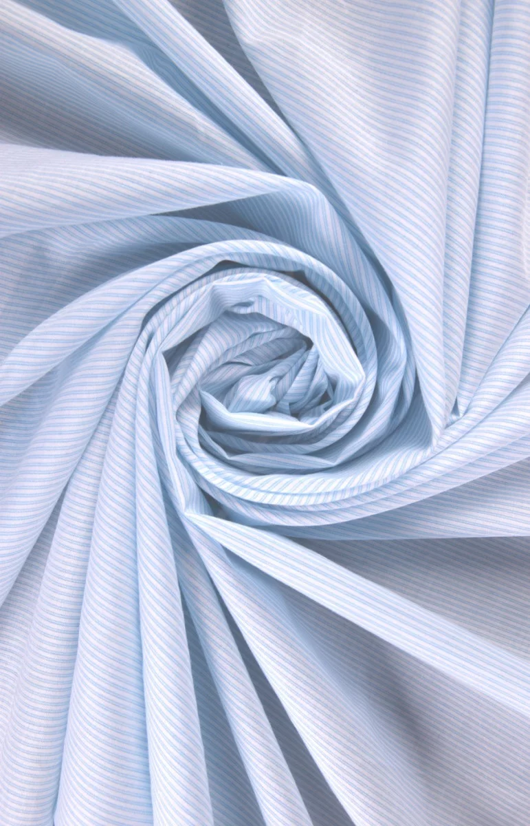 Skjortbomull med tunna ränder är 100% naturlig och återvinningsbar. Kläder gjorda av det är perfekta för varma dagar. Vi rekommenderar den för att sy skjortor, blusar, klänningar eller kjolar. Färger: vita och blå ränder