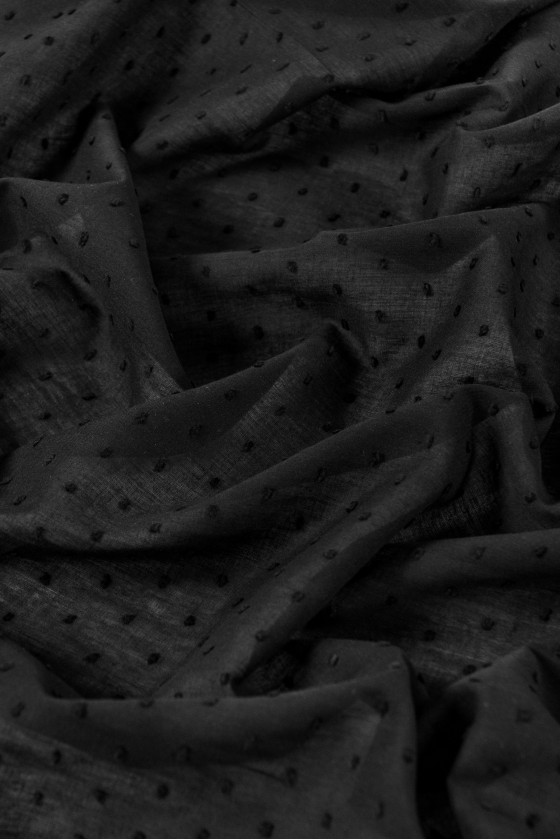 Italienskt batisttyg i 100% bomull i svart med knutet motiv. Bomullsbatist är ett naturligt, delikat, luftigt, lätt transparent tyg - perfekt för sommarvärme.