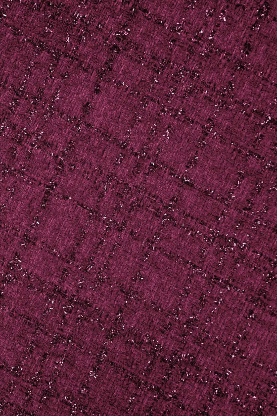 Italiensk chanel kostymtyg i mörk fuchsia med lurextråd invävd i den. Perfekt för set som: jacka + kjol eller klänningar. Den kan också användas för att sy en tunn övergångskappa.