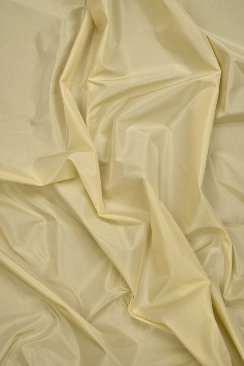 Italienskt polyestertafttyg i ljusbeige färg. Taft är ett tunt men styvt tyg som har en delikat glans. Perfekt för att sy en klänning, blus, skjorta, kjol.