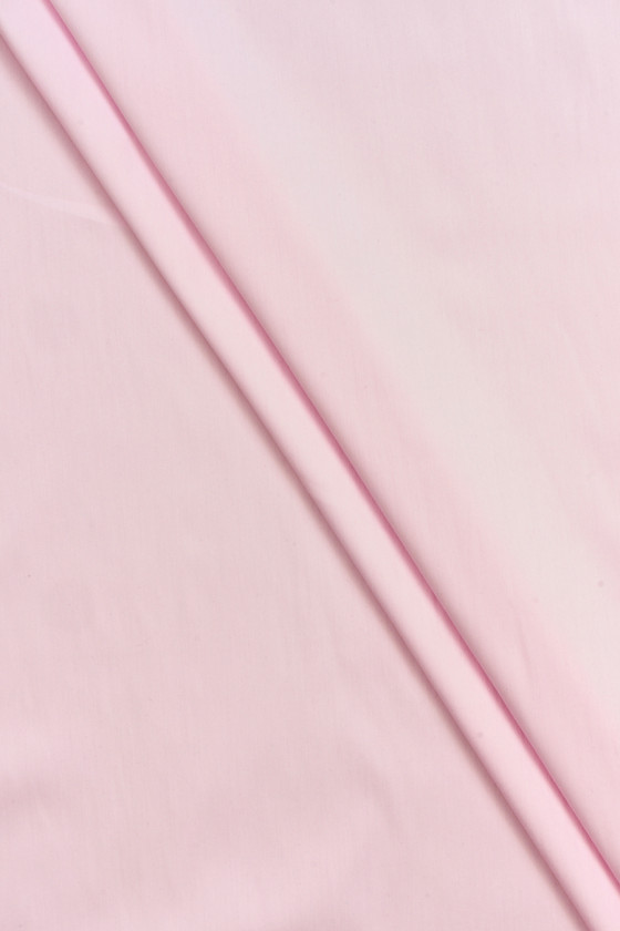 Italienskt skjorttyg vävt av viskos och elastan i ljusrosa. Tyget är tunt, lätt och elastiskt, de andas perfekt, vilket ger hög användarkomfort. Perfekt för att sy skjorta, blus och sommarklänning.