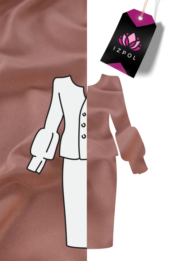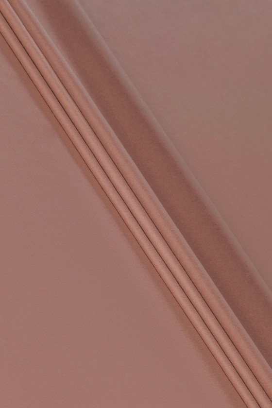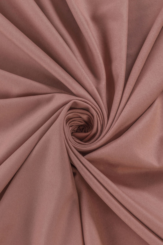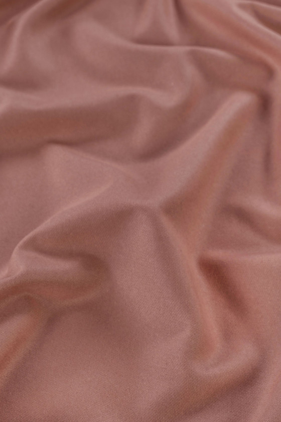 En italiensk blandning av ull och kashmir i en elegant smutsig laxfärg (eller färgen rosa sienna). Tyg, ömtåligt, mjukt, ogenomskinligt, mycket behagligt att ta på