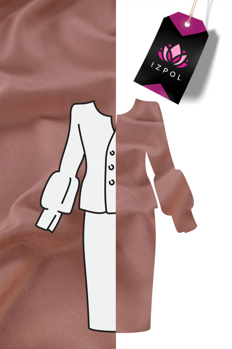 Italiensk ull och kashmir blandas i smutsig laxfärg (eller sienarosa färg). Tyg, delikat, mjukt, ogenomskinligt, mycket behagligt att ta på,. Ett bra förslag för höst- och vinterdräkter, kjolar, klänningar etc.