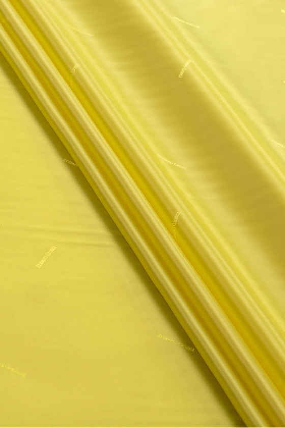 Italienskt viskosfoder i gult. Signerad med namnet på en välkänd designer. Icke-elastiskt, mjukt, lätt glänsande tyg. Perfekt för att fodra kappor, jackor, västar, jackor.