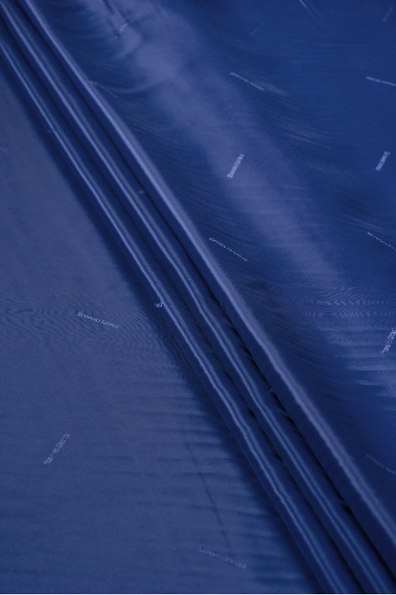 Italienskt viskosfoder i denimblått. Signerad med namnet på en välkänd modedesigner. Tyget är icke-elastiskt, något blankt. Perfekt för att fodra kappor, jackor, västar, jackor.