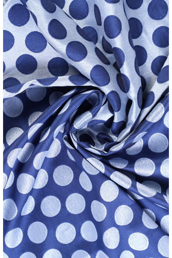 Tunn, icke-elastisk jacquard. Dubbelsidigt tyg, draperar vackert. Den kan användas för att sy en kostym, t.ex. en jacka med kjol eller en tunn kappa. Den marinblå färgen på bilden är faktiskt två toner mörkare.