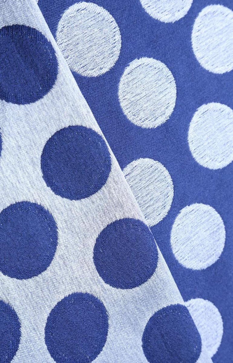 Tunn, icke-elastisk jacquard. Tyget är dubbelsidigt och sitter vackert. Den kan användas för att sy en kostym, t.ex. en jacka med kjol eller en tunn kappa. Den marinblå färgen på bilden är faktiskt två toner mörkare.