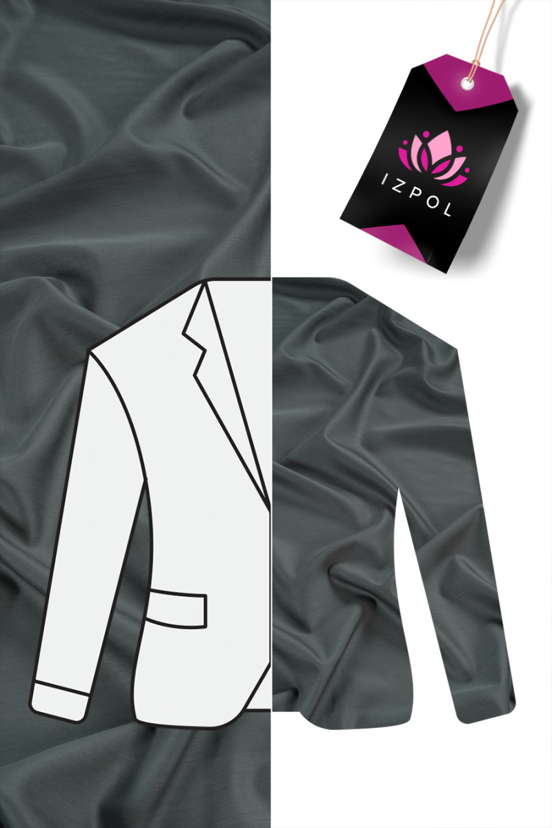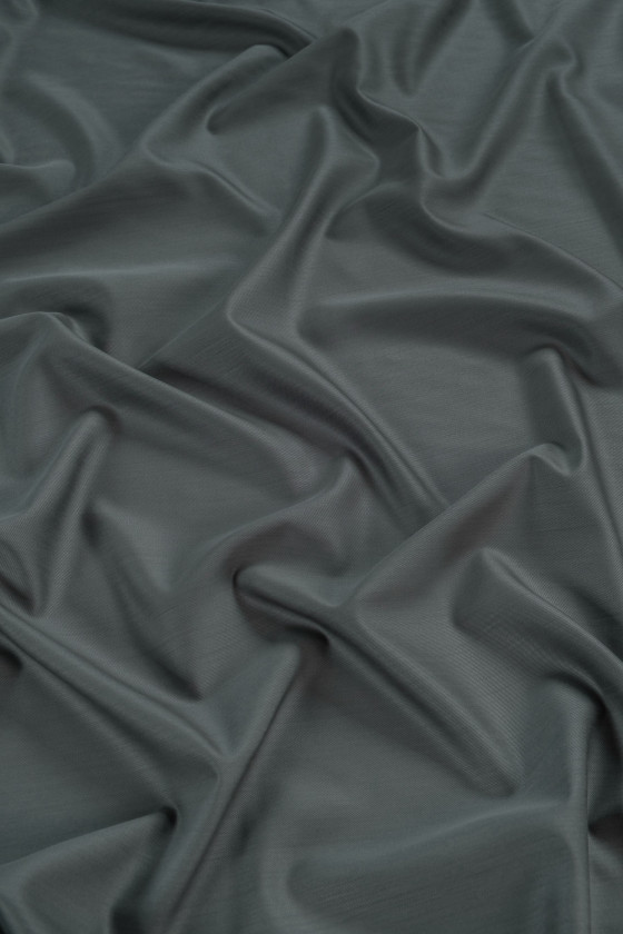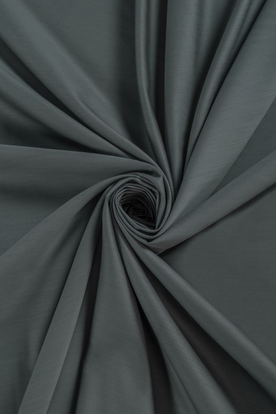 Italiensk kostymull vävd av två färger av svarta och grå trådar, som skapar en tvåfärgad effekt. Mjukt, icke-elastiskt tyg av klassisk tjocklek, med en delikat glans.