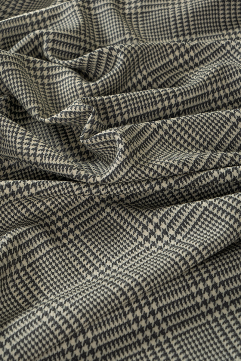 Italiensk kostymull med kypertväv med rutigt motiv och kycklingfot i naturfärgad med grått. Tjockare, köttigare tyg av höst-vintertyp.
