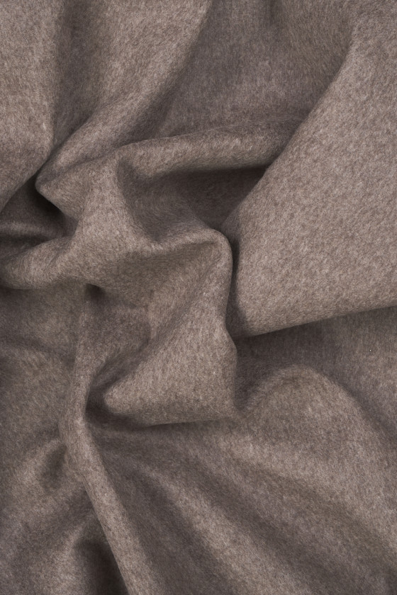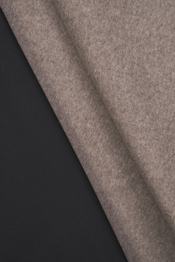 Italiensk pälsull i beigemelerad färg fodrad med svart skum.