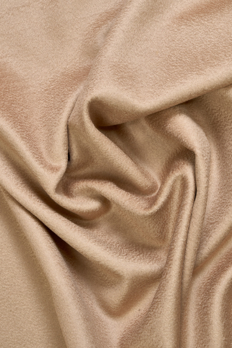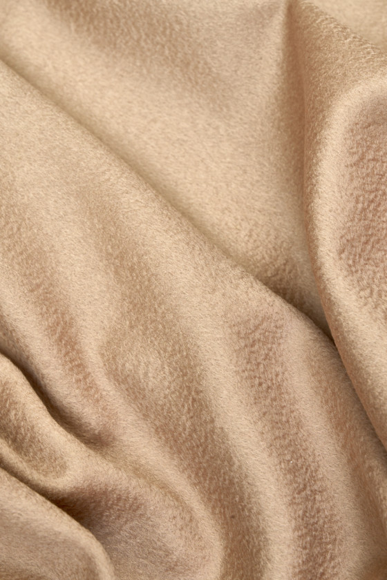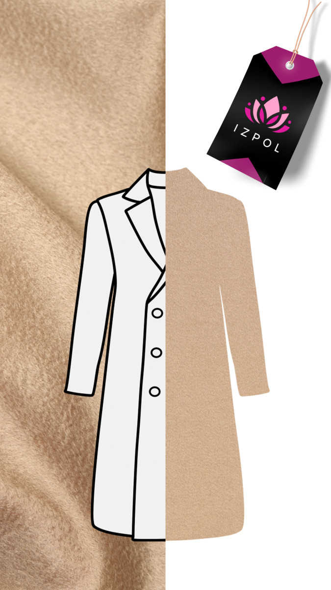 Italiensk vegetabilisk ull med en blandning av kashmir i beige med en vågig struktur som skapar ett tredimensionellt utseende på tyget, känd som Zibellino-effekten. Ett mycket mjukt, ädelt tyg med en delikat glans är perfekt för att sy en höst- och vinterkappa, jacka eller varm väst. Den bästa kvalitetskompositionen gör att tyget inte bara ser vackert ut utan också är väldigt varmt. Tyget är perfekt för dig som gillar klassiker i högsta upplaga.