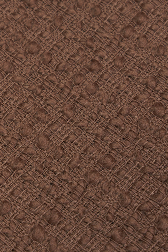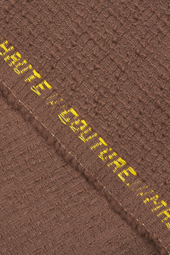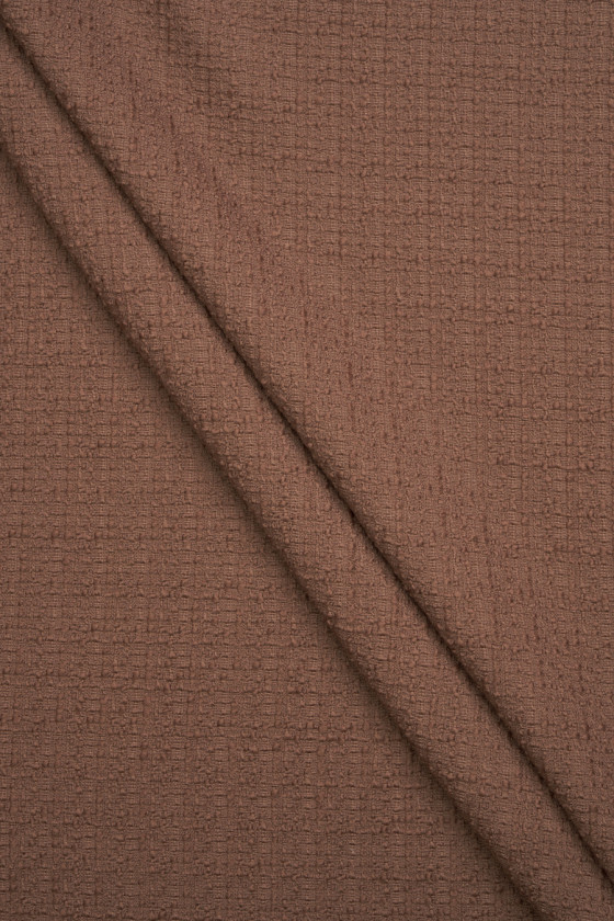 Italiensk chanelull med en delikat boucleväv i kamelbrun färg. Tyg av högsta kvalitet, som kommer från en av de mest kända fabrikerna i Italien. Andra färger finns också!