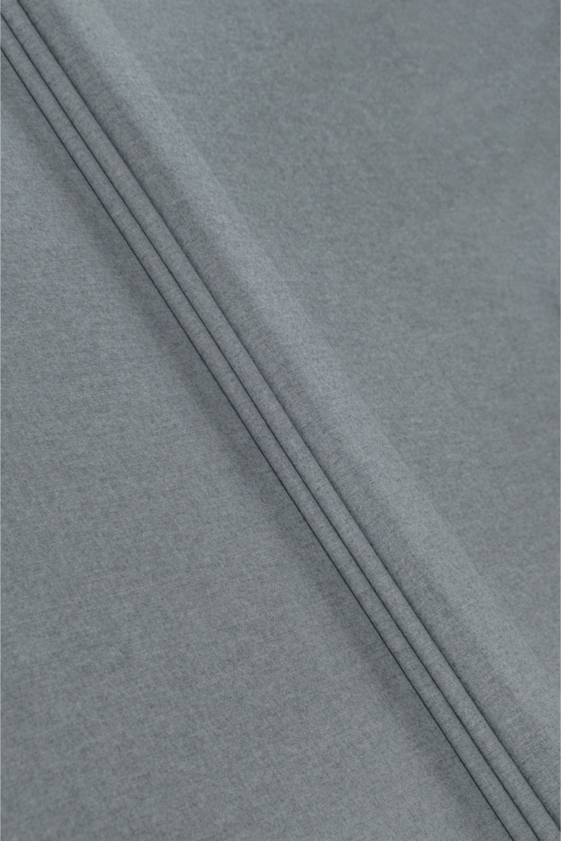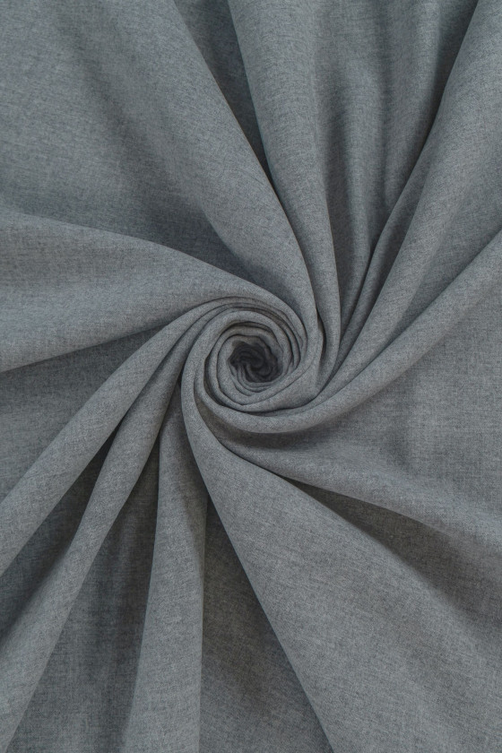 Italienskt kostymtyg vävt av 100 % naturlig ull i melerad grå. Ett tyg med en slät väv och medeltjocklek. Den är mjuk, elastisk och matt. Perfekt för klassiska kläder som klänningar, kjolar, byxor, kavajer och jackor.