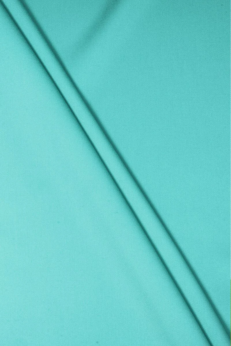 Italienskt ulltyg med tillsats av siden i turkos färg. Tyget håller mycket god kvalitet, det är mjukt, ogenomskinligt, oelastiskt med en kypertråd. Perfekt för klassiska kläder som klänningar, kjolar, damjackor.