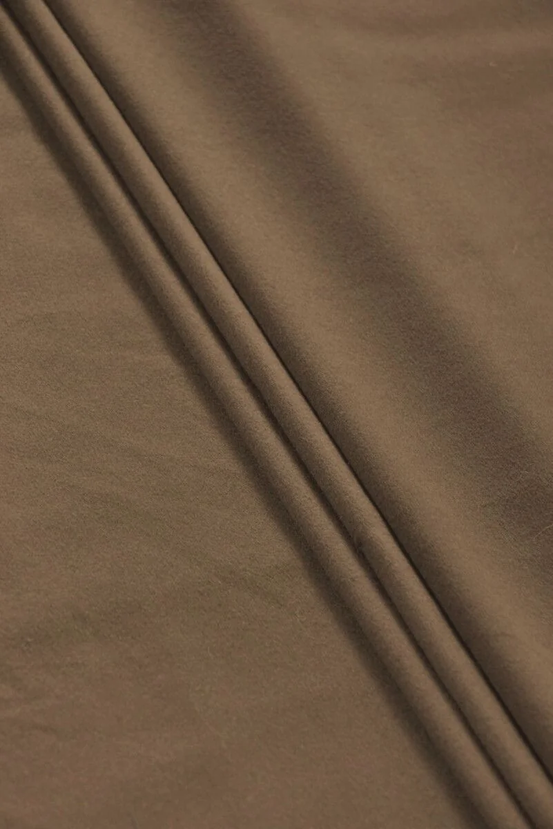 Ett exklusivt, italienskt kostymtyg vävt av kashmir med en blandning av ull i jordbrunt. Kashmirtyger är mycket ömtåliga, lätta, mjuka och mycket behagliga att ta på. Den kännetecknas av utmärkt luftgenomsläpplighet och isolerande egenskaper, eftersom kashmir är flera gånger varmare än fårull. Perfekt för att sy en kappa, jacka, väst.