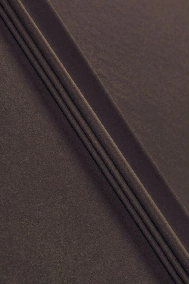 Italienskt dräkttyg gjort av 100% naturlig vergan-ull i brunt. Materialet har en melangevävning, det är tunt men av flanelltyp. Tyget är mjukt och mycket behagligt att ta på. Den är perfekt för att sy höst- och vinterkläder som klänning, kjol eller byxor. Ett fantastiskt erbjudande för dem som uppskattar bra genrer i en varm utgåva.