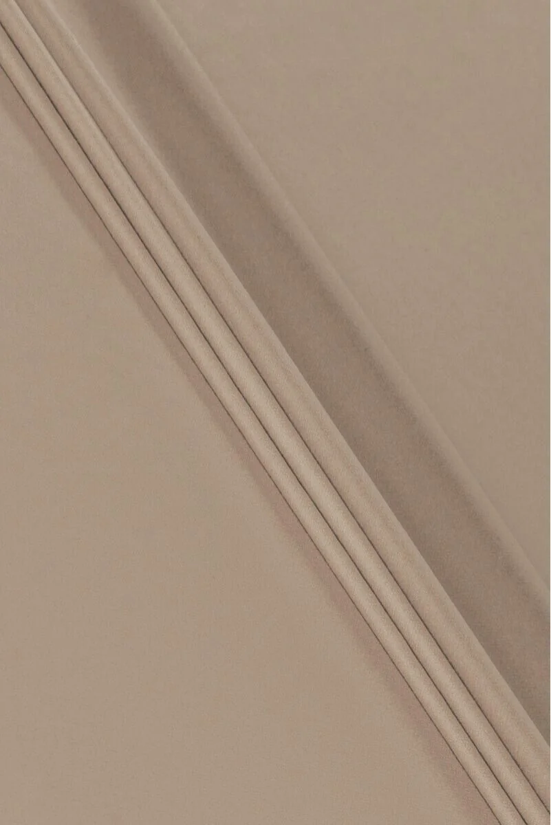 Italienskt dräkttyg gjort av 100 % naturlig ull i grå beige. Tyget är av medeltjocklek, icke-elastiskt, med en twill-vävning. Den är perfekt för att sy höst- och vinterkläder som: klänning, kjol, jacka. Ett fantastiskt erbjudande för personer som värdesätter bra typer av tyger.