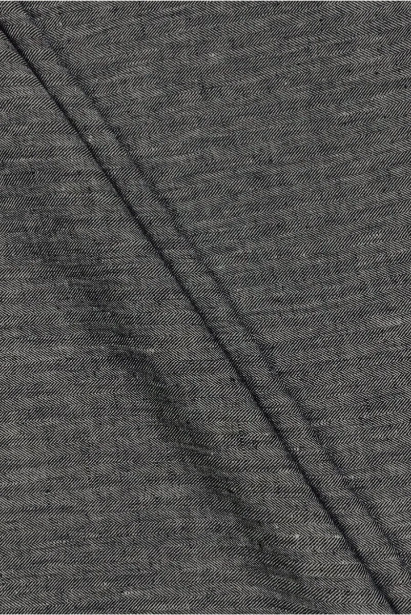 Italienskt dräkttyg tillverkat av 100 % naturlig verzinull med ett gråsvart fiskbensmotiv. Den bildar vertikala remsor som är 1 cm breda. Tyget är mjukt och mycket behagligt att ta på. Den är perfekt för att sy höst- och vinterkläder som klänning, kjol eller byxor. Ett fantastiskt erbjudande för dem som uppskattar bra genrer i en varm utgåva.