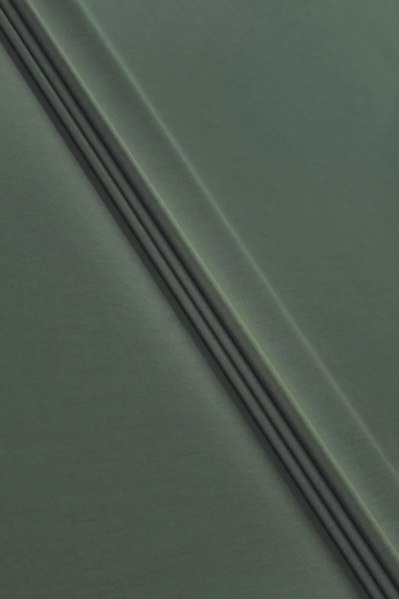 Italienskt dräkttyg gjort av naturlig Vergin-ull med en blandning av elastan. Materialet vävs av två färger av mörkgröna och grågröna trådar, vilket skapar en tvåfärgad effekt. Tyget är elastiskt, medeltjockt med en slät väv. Den är perfekt för att sy en klassisk kostym, klänning, kjol eller byxor. Naturligt tyg i en originalfärg för dem som gillar mörka färger.