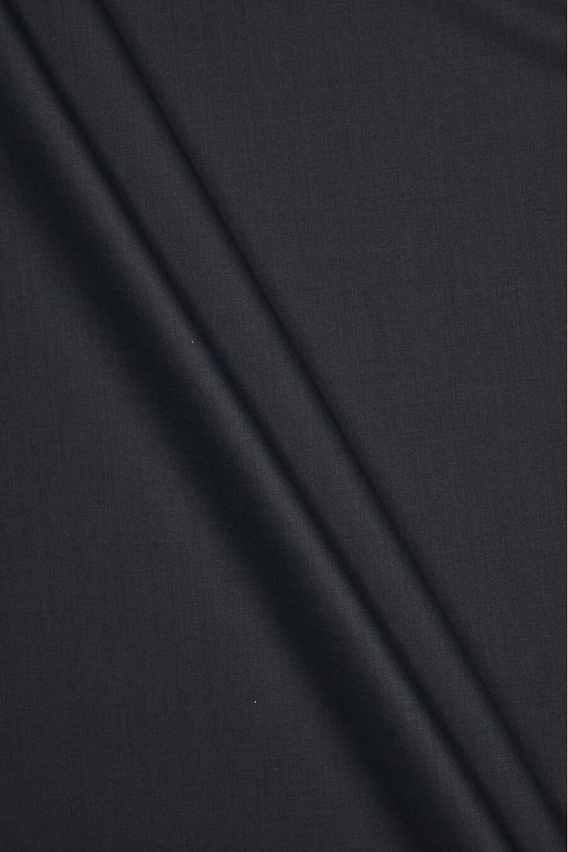 Italienskt kostymmaterial gjort av 100 % naturlig ull i mörkblått lite. Materialet har en slät, matt väv, det är oelastiskt med medeltjocklek. Den är perfekt för att sy kläder som: kostym, kostym, klänning, kjol eller byxor.