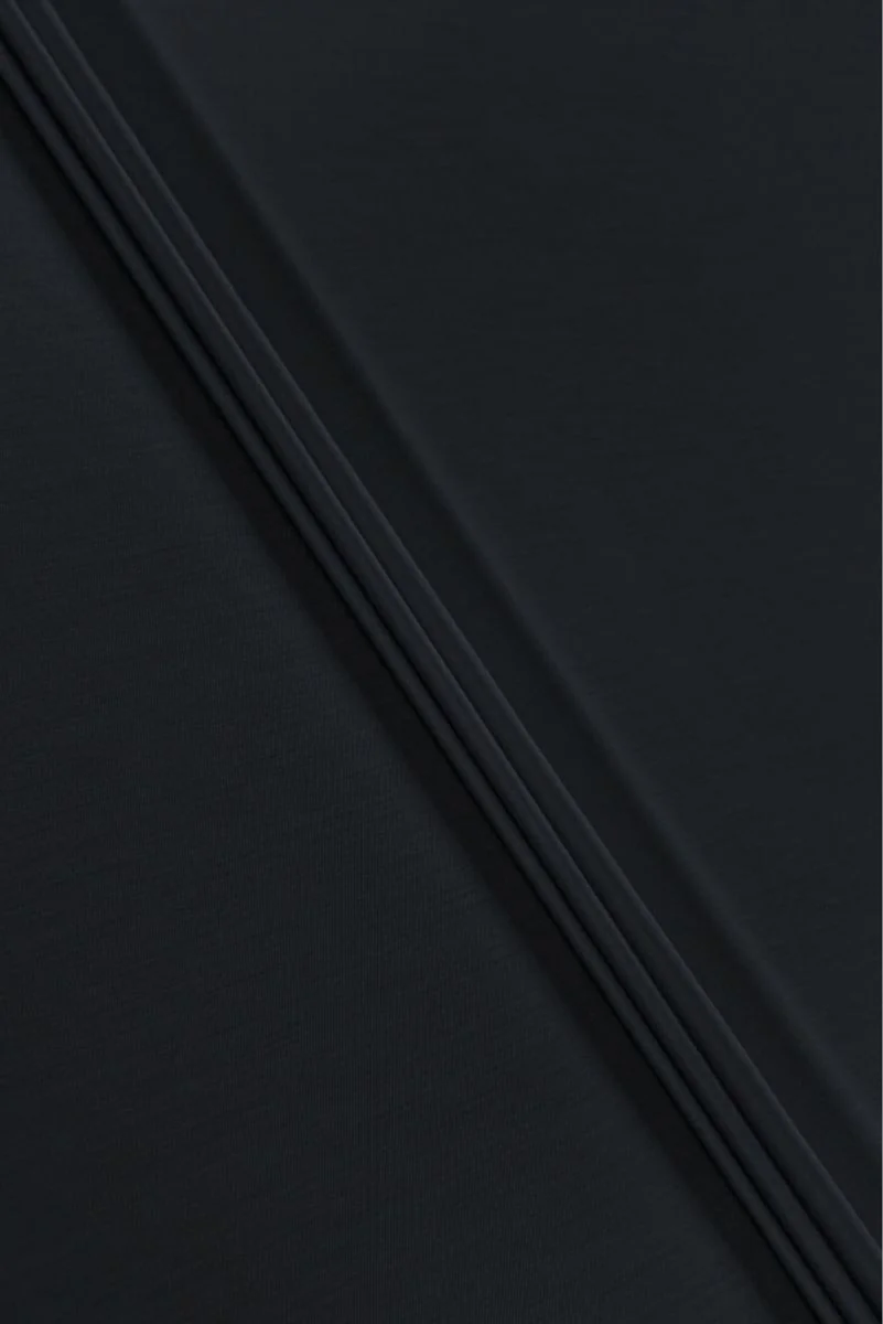 Italienskt dräkttyg gjort av ull mer naturligt med tillägg av elastan i mörkblått lite. Tyget är medeltjockt, elastiskt med en slät, matt väv. Den är perfekt för att sy kostym, kostym, byxor, klänning eller kjol i naturligt tyg för dem som gillar klassiska färger.