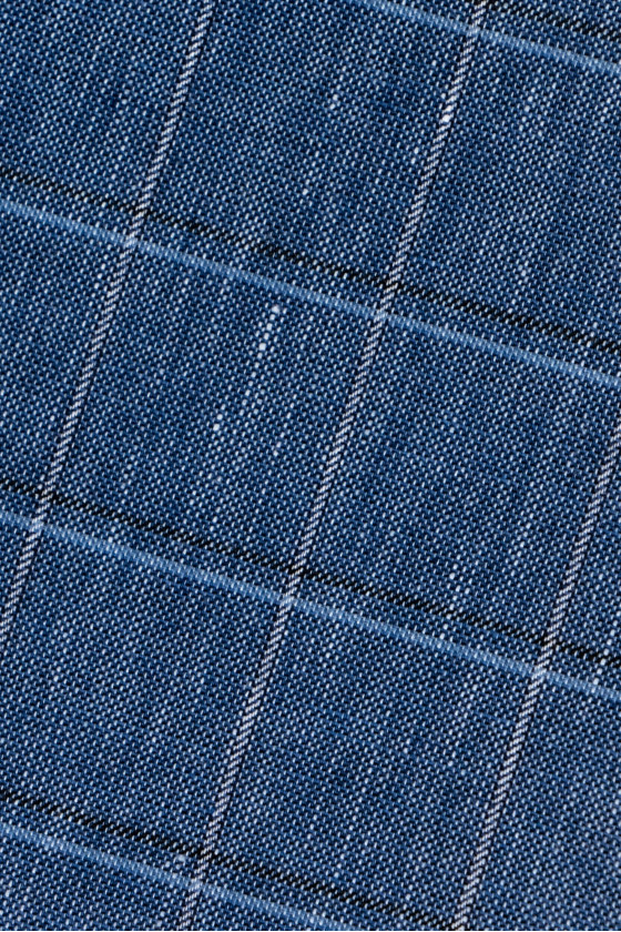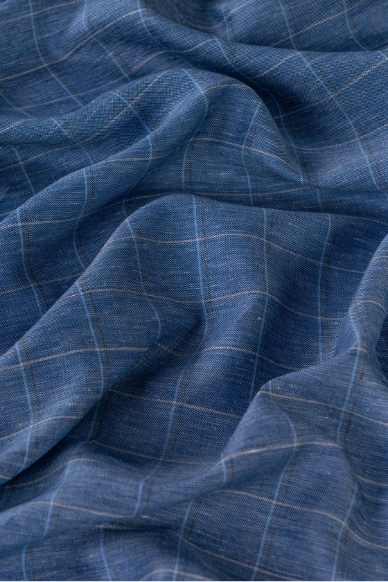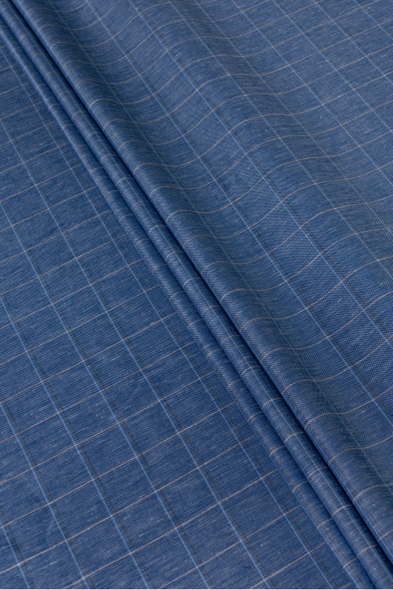 Italienskt linnetyg med en blandning av bomull i en gråblå ruta med en storlek på 4,5 cm. Linne är ett ekologiskt tyg tillverkat av växtfibrer. Detta gör att det bryts ner helt, vilket är anledningen till att linnetyger är säkra för miljön. Linnetyger är slitstarka, slits inte ut snabbt, behåller sina egenskaper under lång tid, är perfekt andningsbara, andas, vilket ger hög användarkomfort. Icke-elastiskt, ogenomskinligt tyg - perfekt för att sy en klänning, kjol, byxor eller jacka.