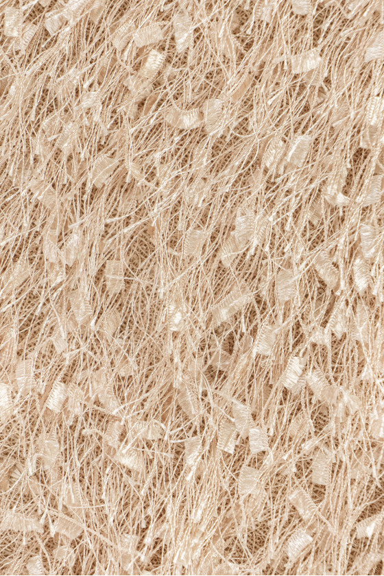 Italienskt tyg med täta tofsar, 3 cm långt i beige. Tyget är mjukt, elastiskt, behagligt att ta på.