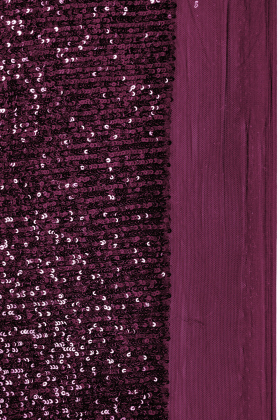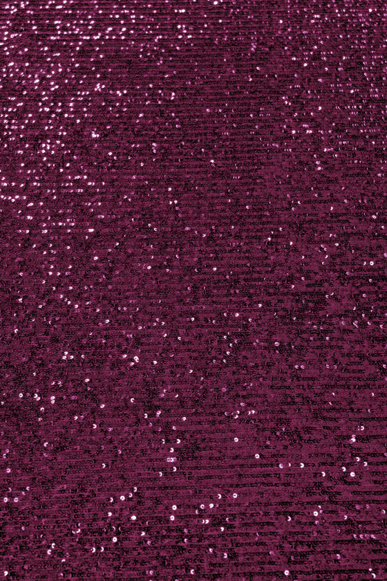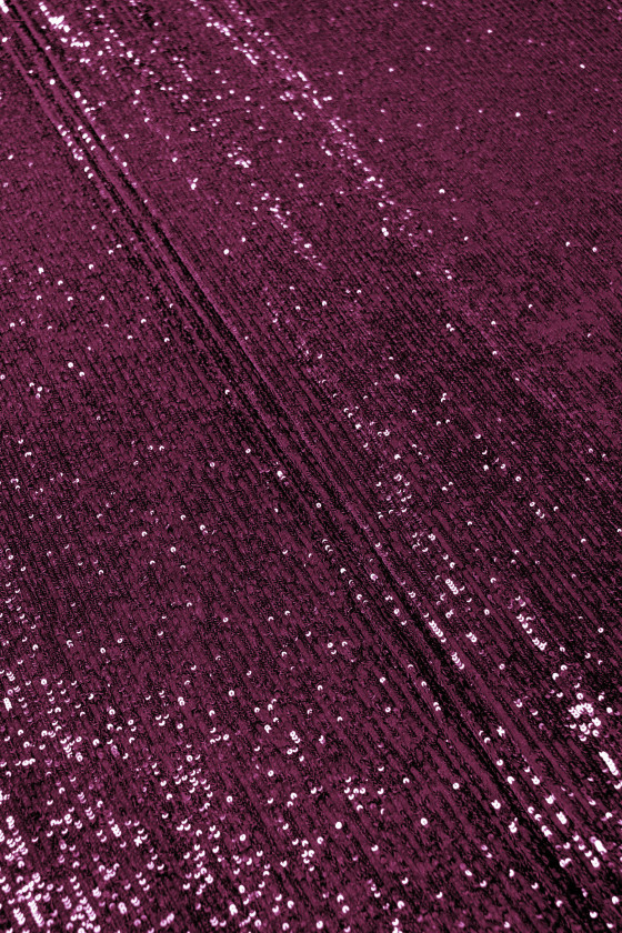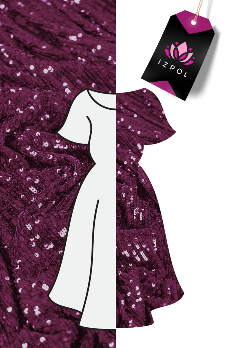 Italienskt aftontyg i en mycket originell färg av mörk, dämpad lila. Vackra, små paljetter sydda på ett elastiskt nät. Tyget är tungt, vackert glänsande, elastiskt längs längden. Ett vackert förslag för människor som gillar originella och fashionabla färger.