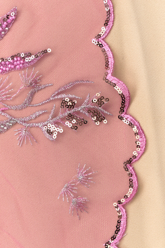Tyll med pärlor och paljetter rosa