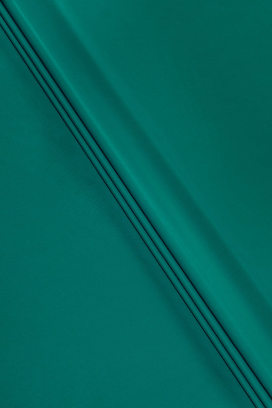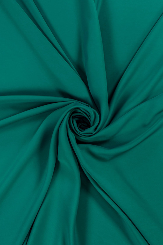 Italiensk cadiklänning i mörkturkos. Tyget är ädelt glänsande på ena sidan och matt (georgette-typ) på den andra - det kan sys på båda sidor. Cadi-klänningstyget är ogenomskinligt, köttigt, böljande (tungt) och oelastiskt. Du kan använda den för att sy klänningar, blusar, kjolar, byxor, kostymer.