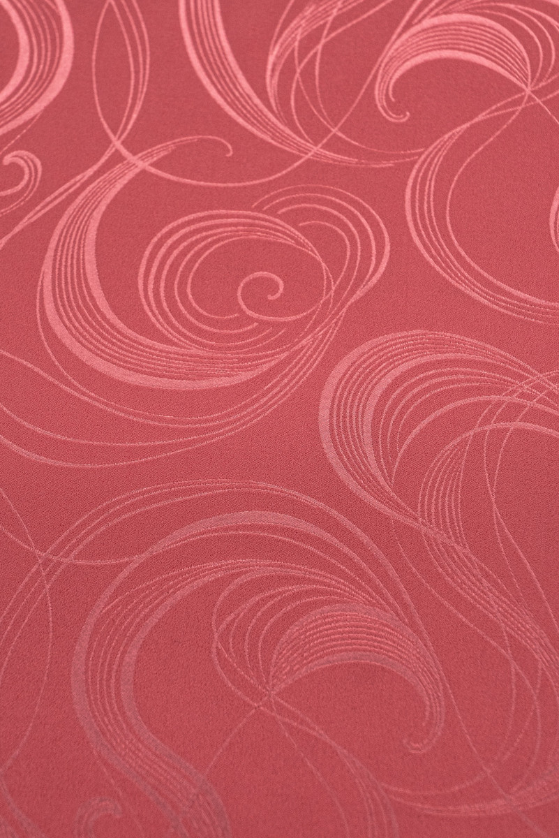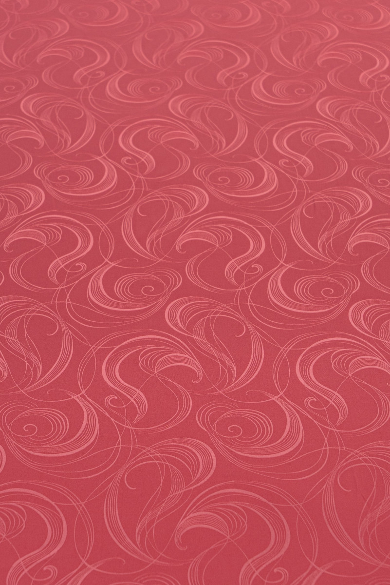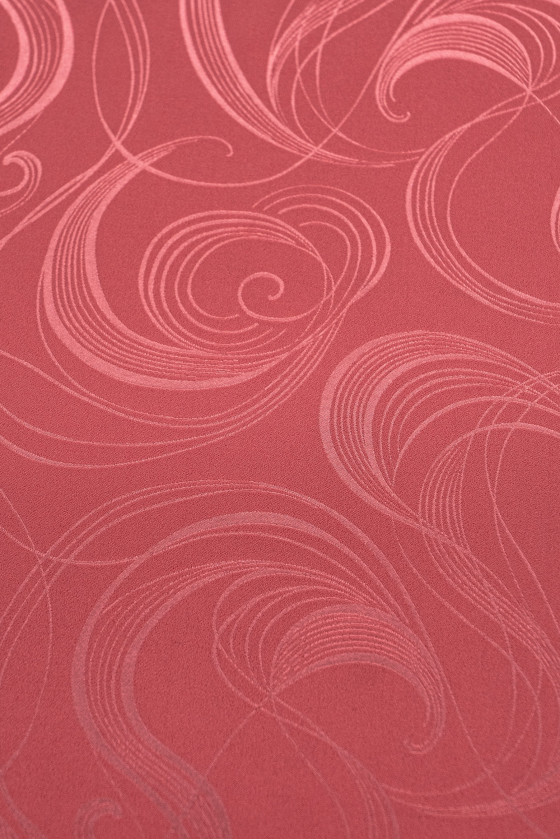 Italiensk polyestersatin i korallfärg med ett motiv av snygga mönster - mycket elastisk. Satin är ett tätt och lätt tyg med en plan yta, tillverkat i en satinväv. En ytterligare fördel är dess jämnhet och hållbarhet, liksom det faktum att den sitter mycket bra, inte syns igenom och är behaglig att ta på. Å ena sidan är den matt och å andra sidan är den ädelt glänsande.