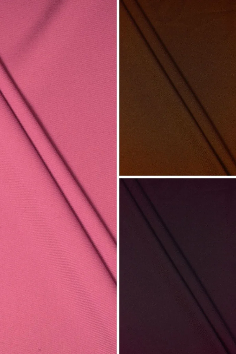Italienskt polyviskosdräkttyg i vackra färger. Ett lätt elastiskt tyg med en kompakt, lätt twillväv. Ett fantastiskt förslag för att sy en jacka, kostym, klassisk klänning eller kjol.