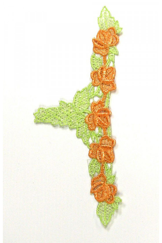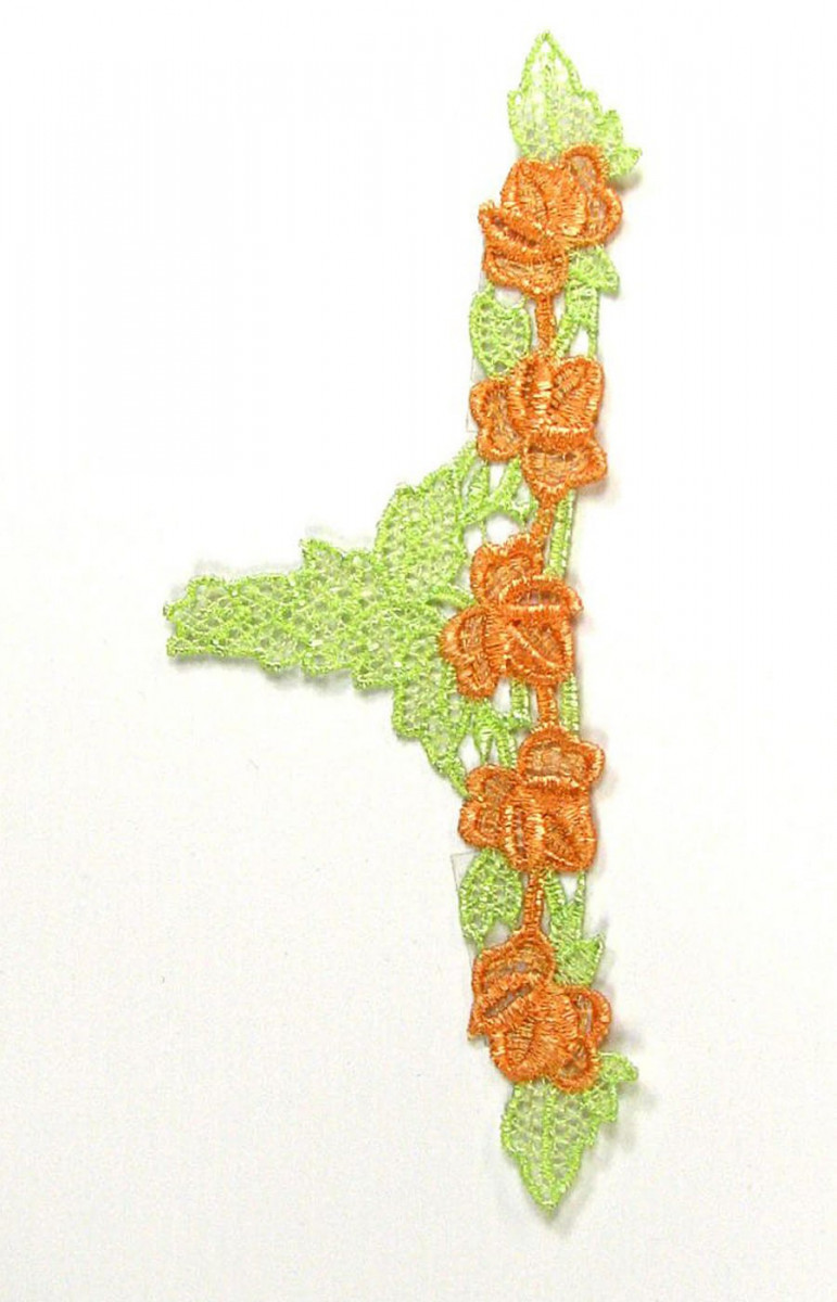 Italienska underklädesapplikationer i grönt och orange med blommotiv.