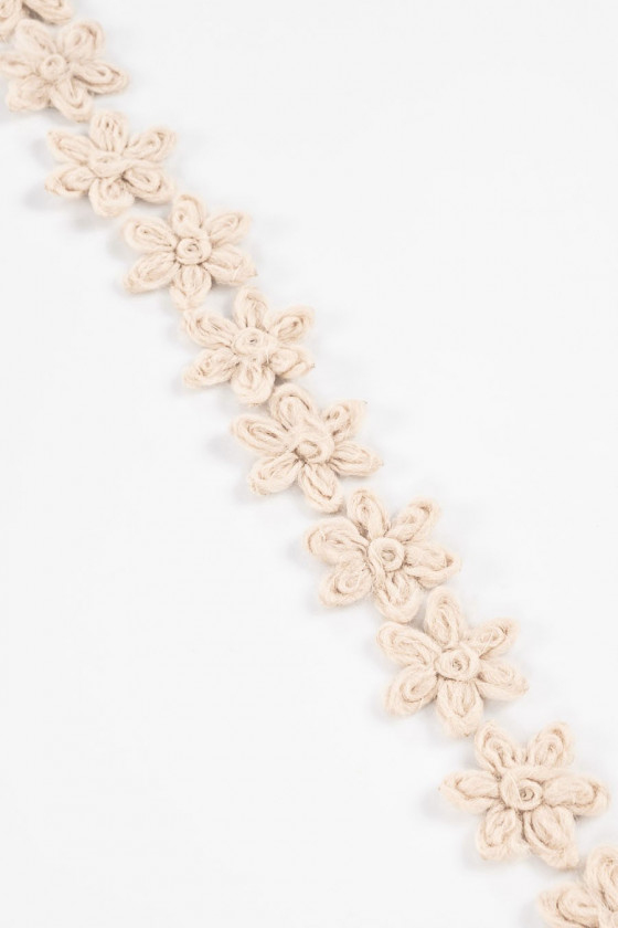 Italiensk blomapplikation i beige, tillverkad av naturlig ull. Bredd: 5 cm.