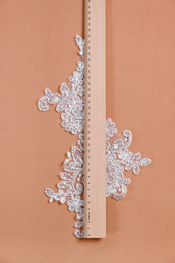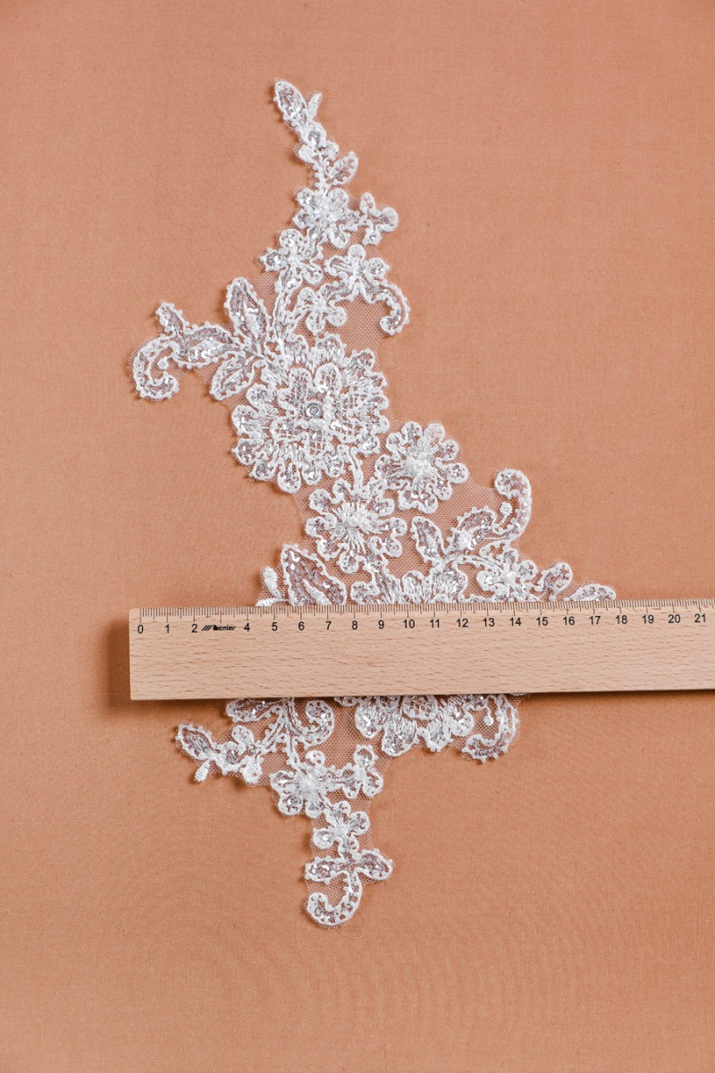 En vacker bröllopsapplikation för att sy på klänningar och blusar. Rikt dekorerad med pärlor och paljetter.