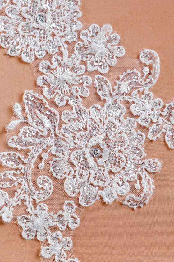 Bröllopsapplikation med paljetter och pärlor