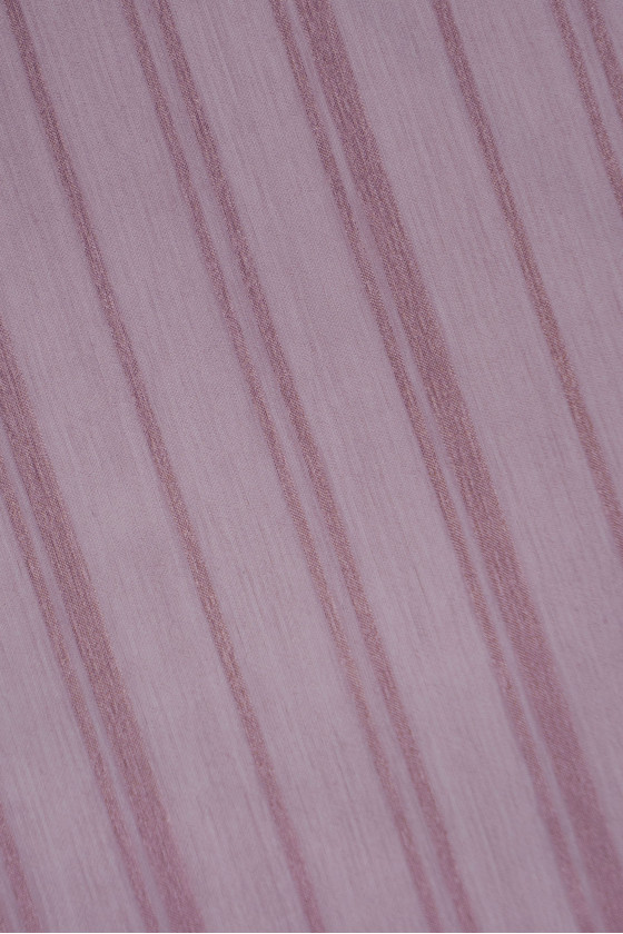 Italiensk chiffong skrynklad i 100% siden i mörkt, smutsigt rosa. Tyg Devore med ett randigt motiv på 0,8 cm, 0,5 cm och 0,2 cm bredd. Devore-tyget är en kombination av skrynklig chiffong med ytterligare satinränder.