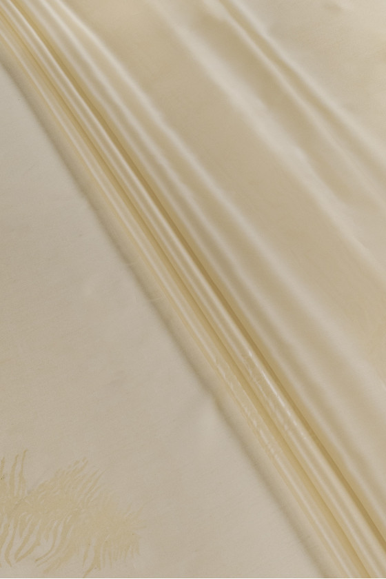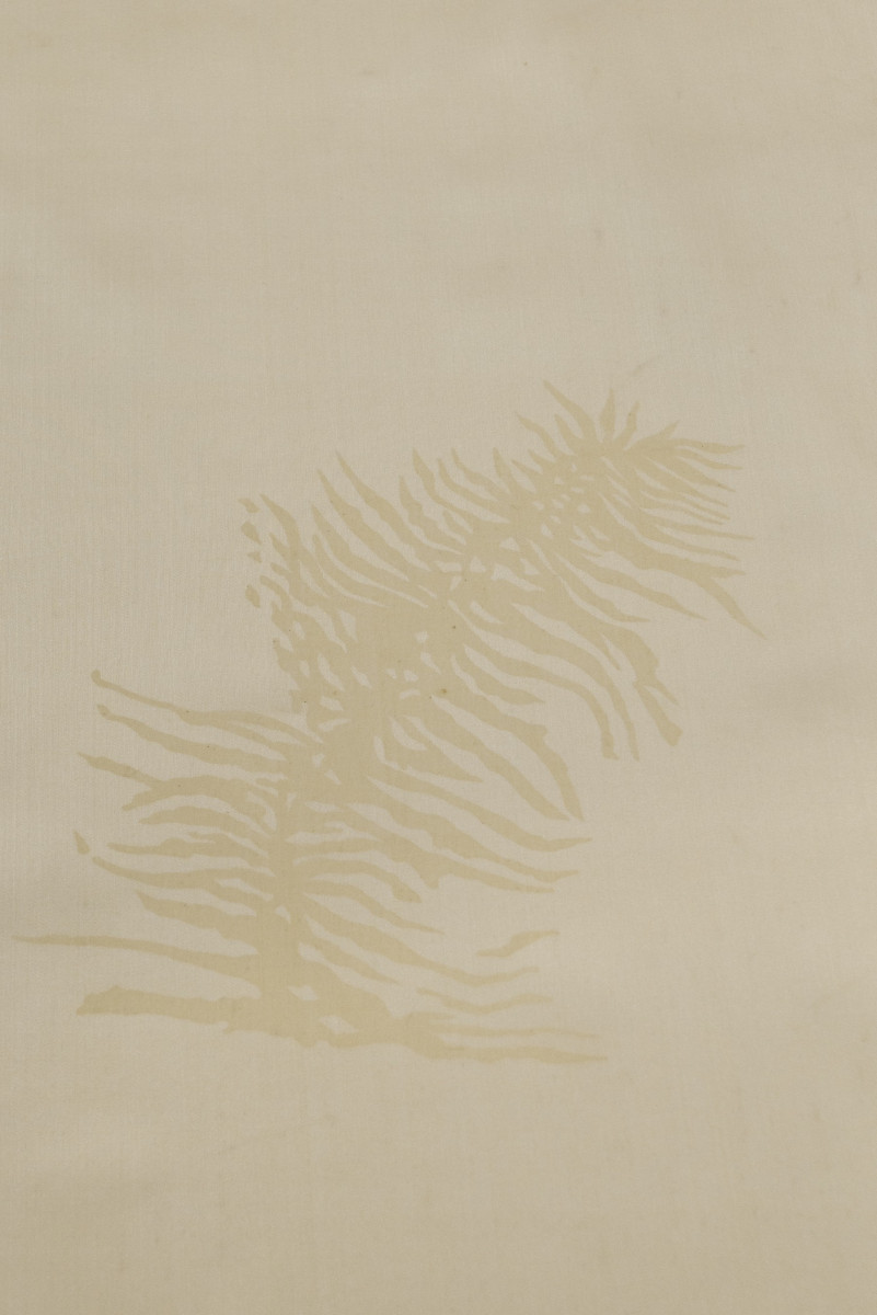 Italienskt organzatyg i 100% siden i beige med bladmotiv. Tyget kommer i en kupong med måtten 75 cm*140 cm.