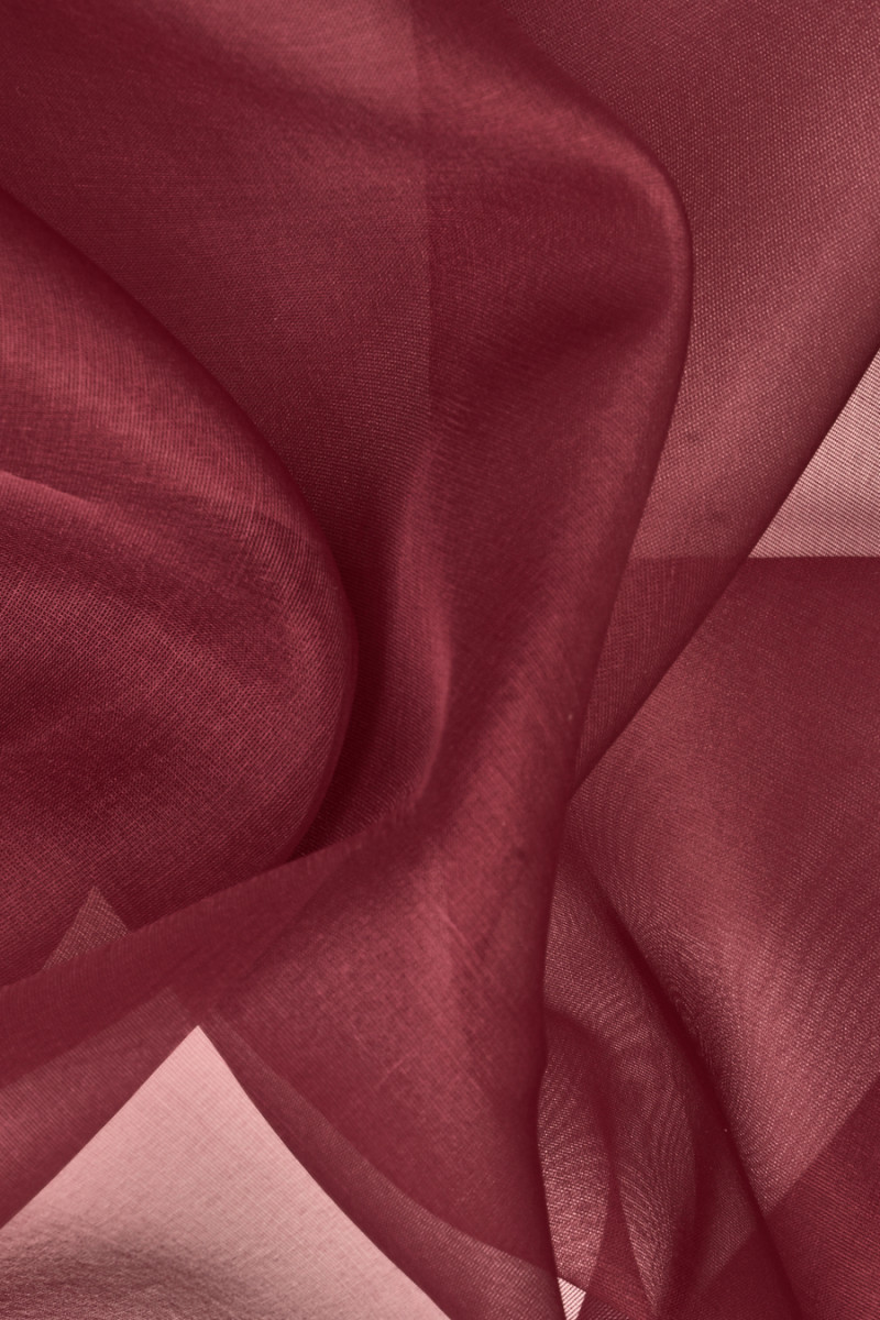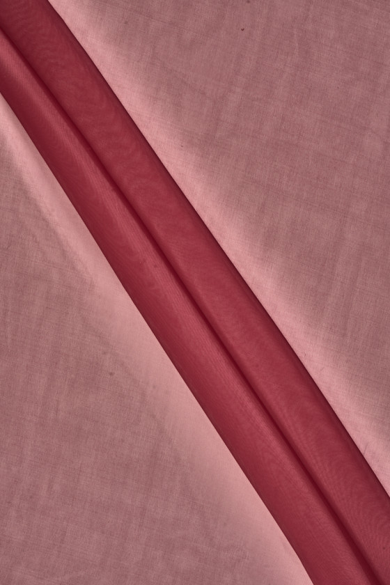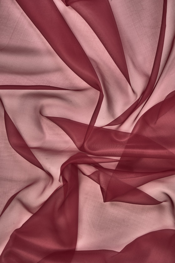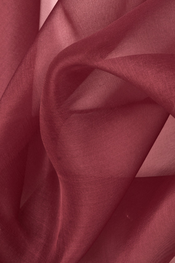 Italienskt 100% sidenorganzatyg i färgen vin. Naturlig sidenorganza är ett tunt, transparent men styvt tyg med en delikat glans som är karakteristisk för sidentyger. Perfekt för att sy en klänning, blus, skjorta, kjol.