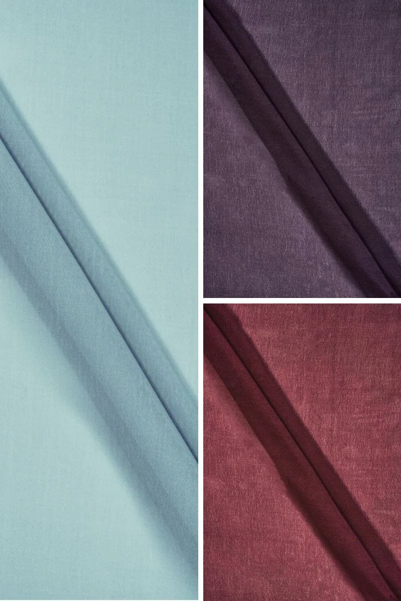 Italienskt sidentyg med elastan i flera färger. Tyget är tunt, lätt genomskinligt. Den har en vacker matt väv och är väldigt flexibel. Den kan användas i ett mycket brett spektrum av applikationer, t.ex. som tyg för att sy en blus, kjol eller klänning, men också som foder för andra sidentyger.