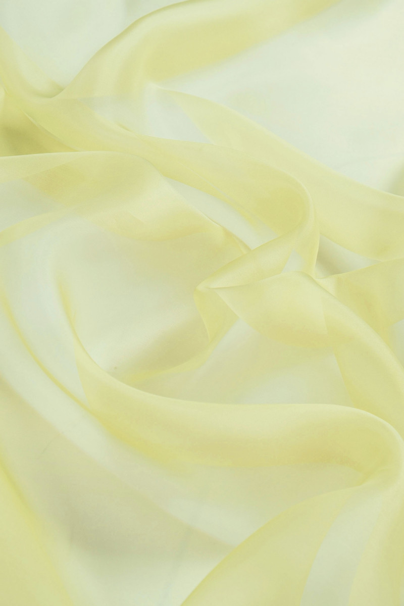 Italienskt 100% sidenorganzatyg i pastellgult. Naturlig sidenorganza är ett tunt, transparent men styvt tyg med en delikat glans som är karakteristisk för sidentyger.