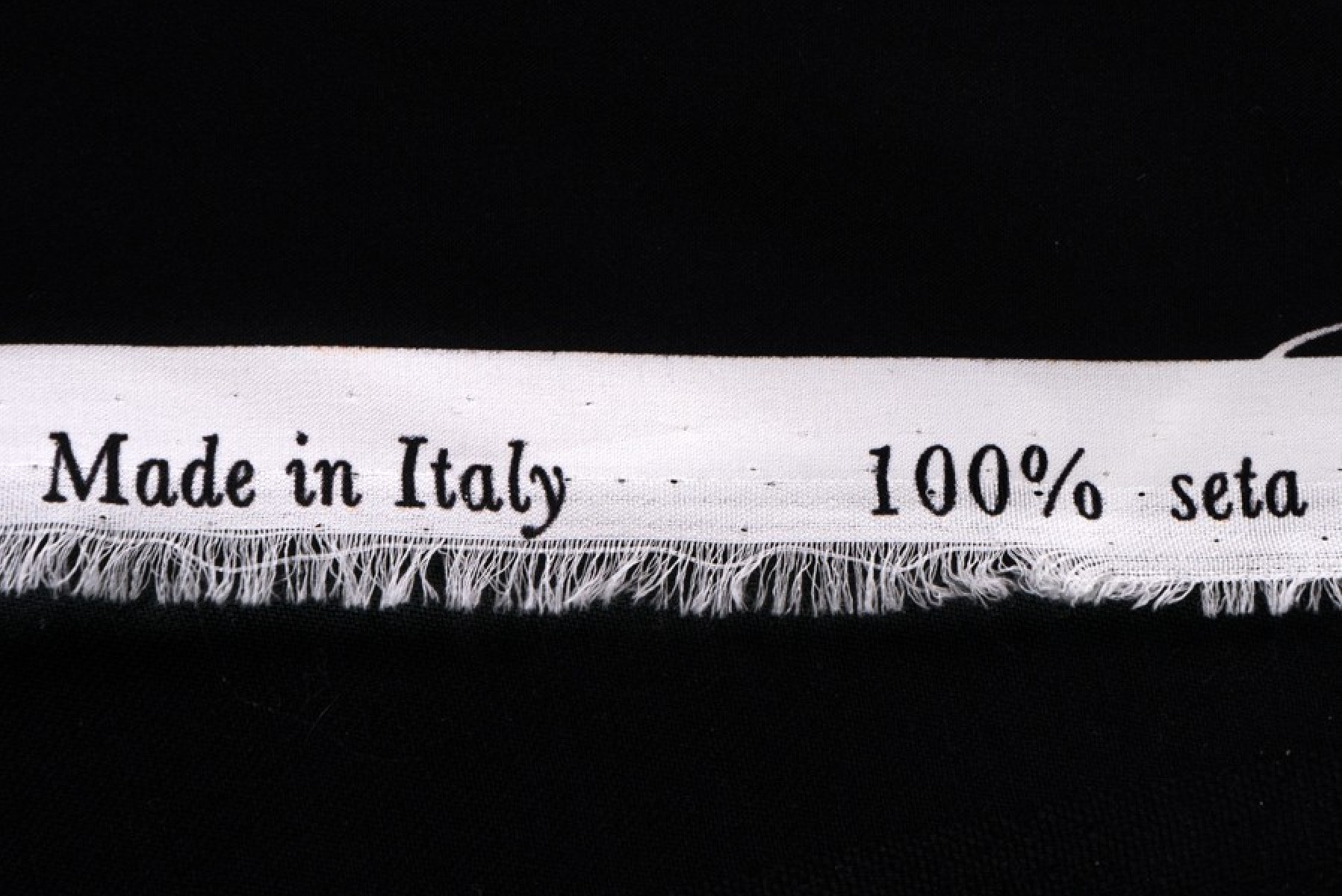 Italiensk 100% sidensatin i svart med ett tätt tryck av rosblommor i vitt, beige och ljusrosa. Helheten kompletteras av breda, vågiga ränder i samma färger. Ett fantastiskt förslag för människor som gillar blommiga mönster i mörka färger.