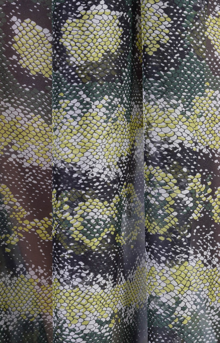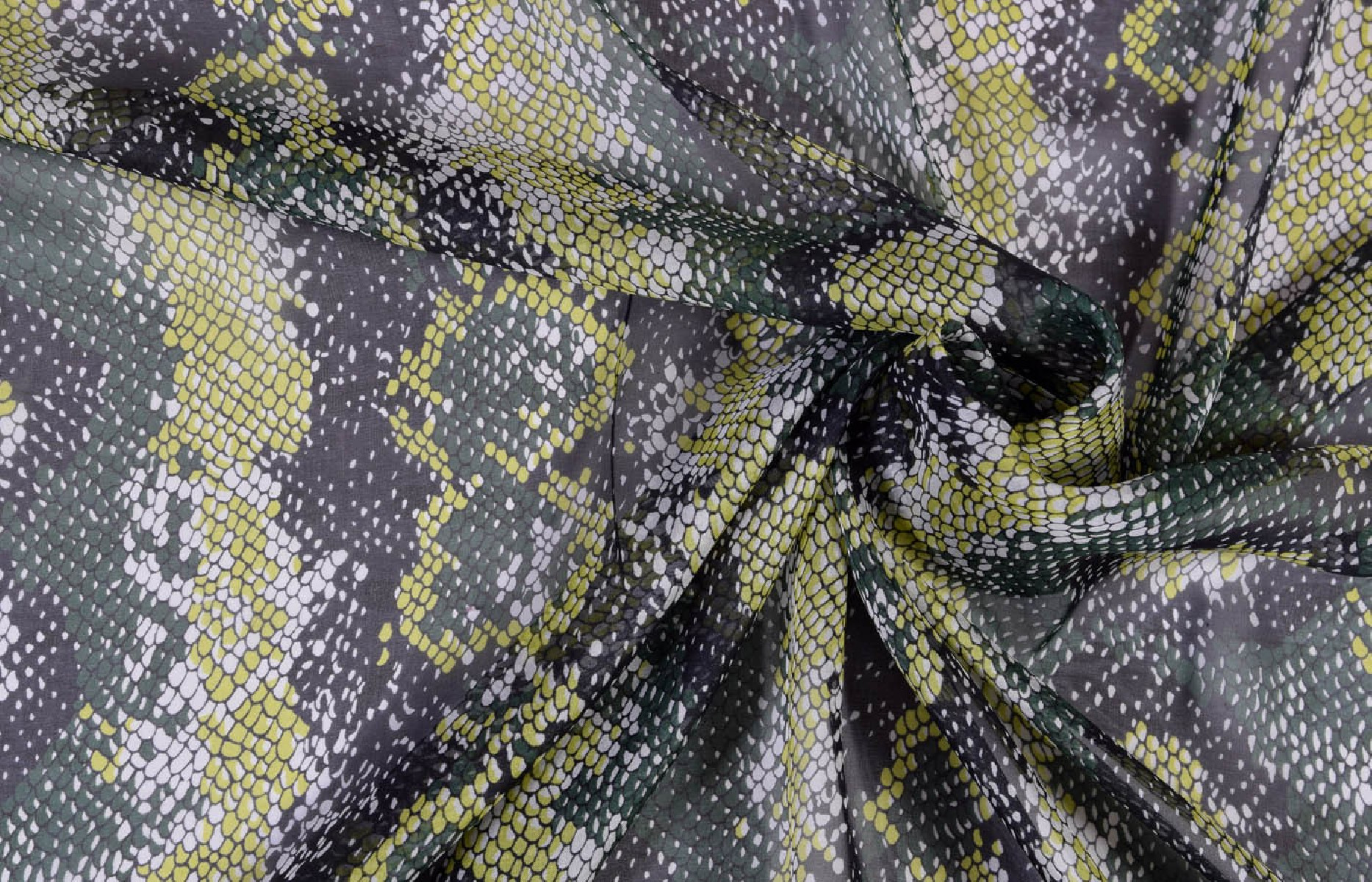 Muslin av naturligt siden. Tyget är mycket luftigt, inte elastiskt. Perfekt för sommarklänningar och blusar.