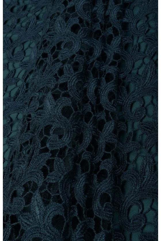 Guipira spets med ett blommigt mönster i mörk turkos. Perfekt för kjolar, klänningar.