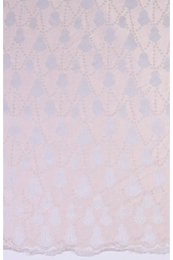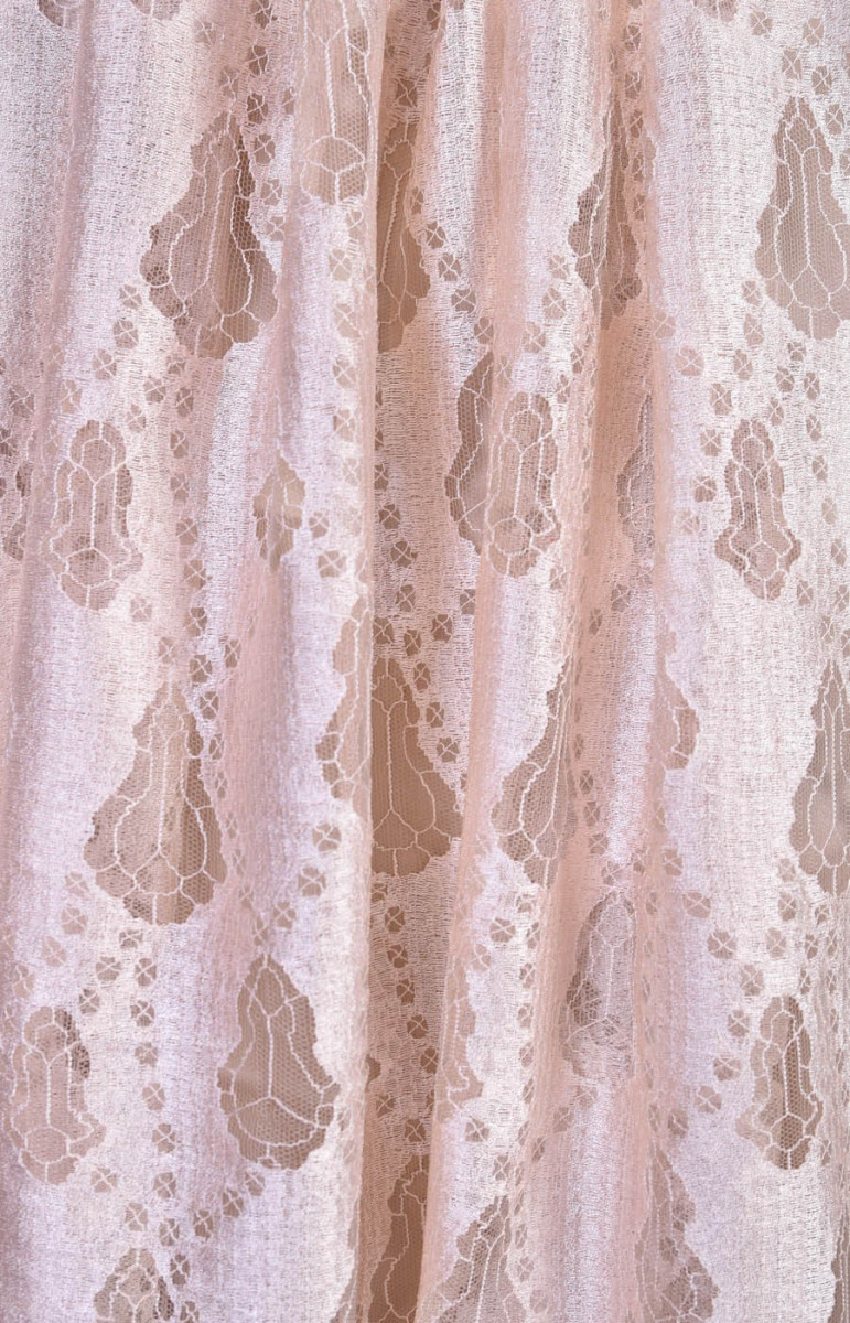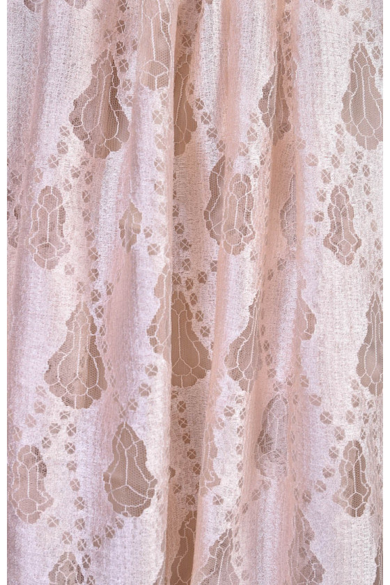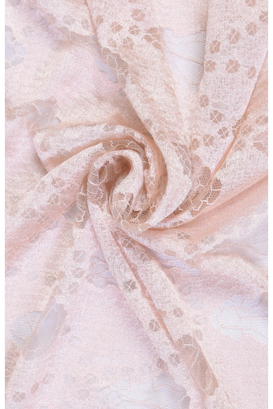 Spets med medelhög täckning i ljusbeige med en droppe rosa.