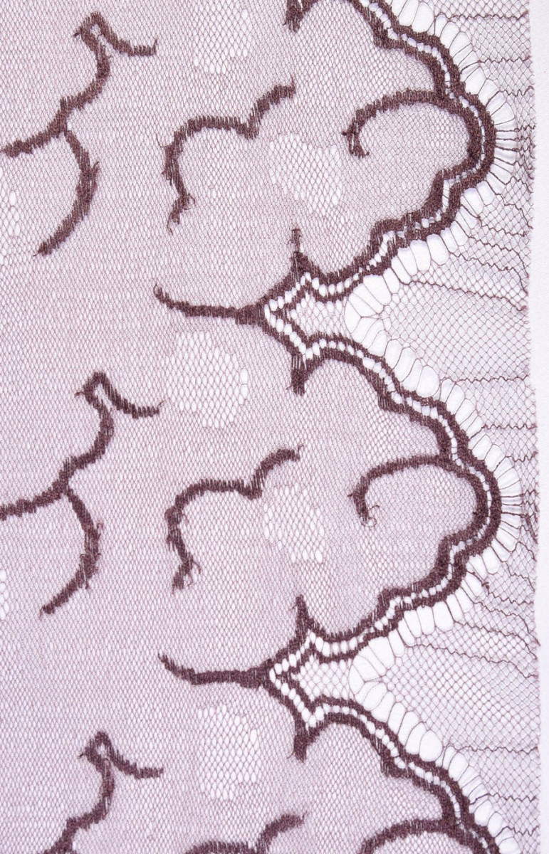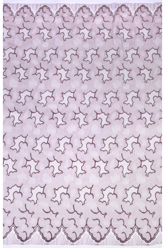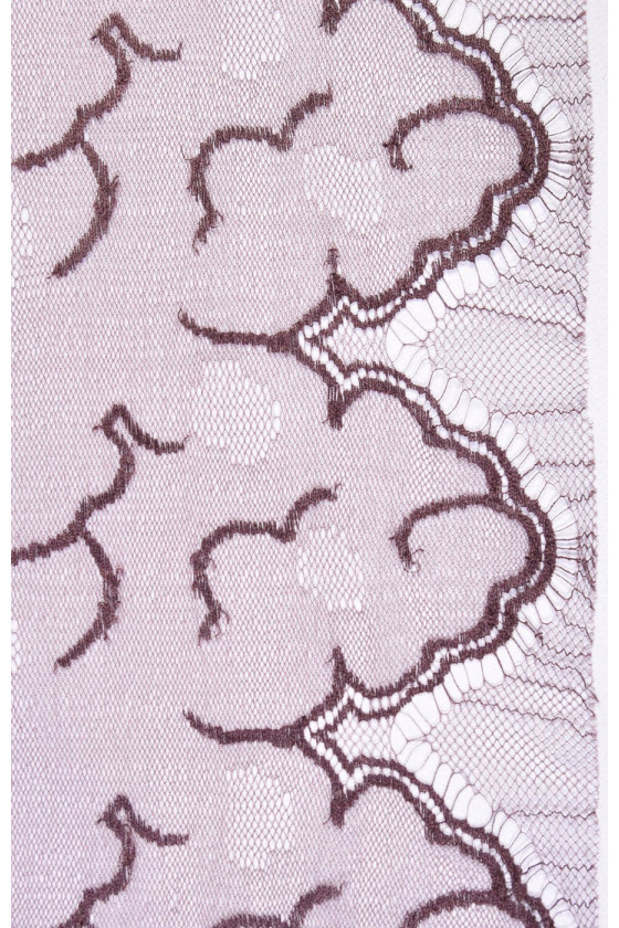 Tunn, delikat spets i färgen vinrödbrun. Färdig med en tand på båda sidor. Tyget är perfekt för blusar och klänningar.