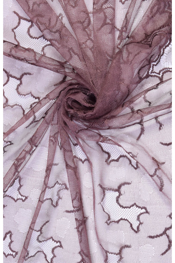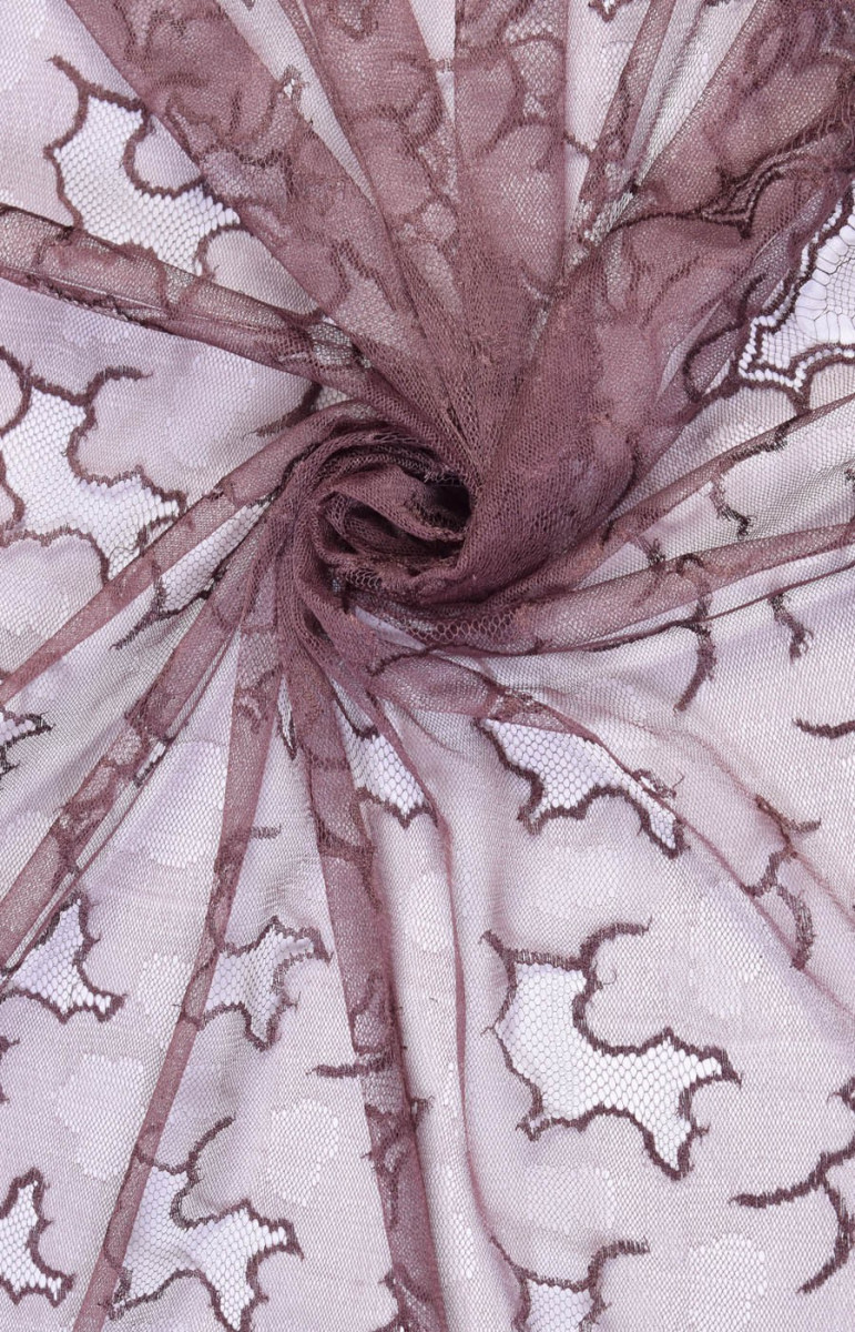 Tunn, delikat spets i färgen vinrödbrun. Avslutad med en tand på båda sidor. Tyget är perfekt för blusar och klänningar.